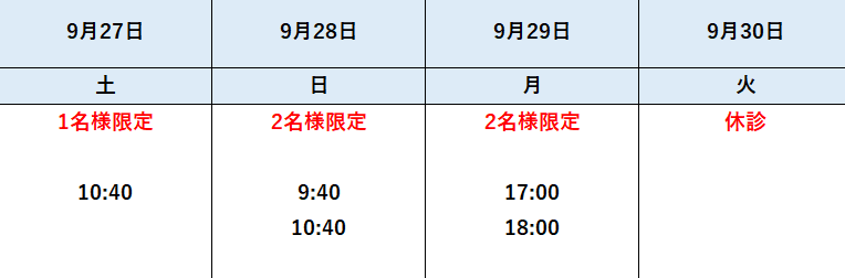 ※予約枠が埋まります! お早めにどうぞ
