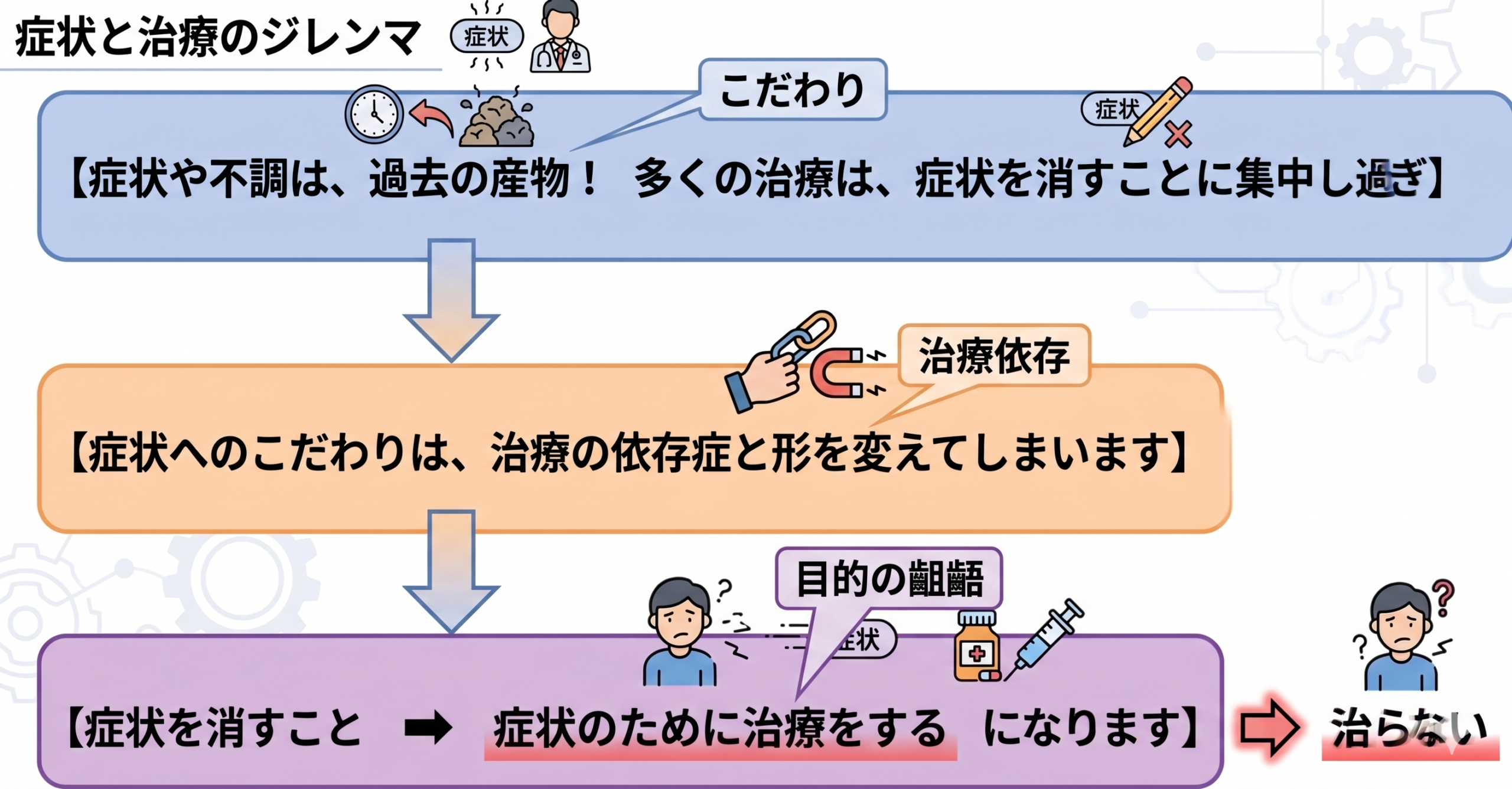 過去の症状にこだわりすぎる(治療家・患者)と治るための治療にならなくなる